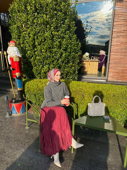 İndirimBisiklet Yaka Örgü Kazak Bordo