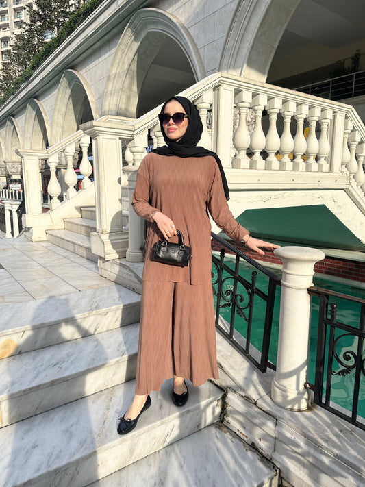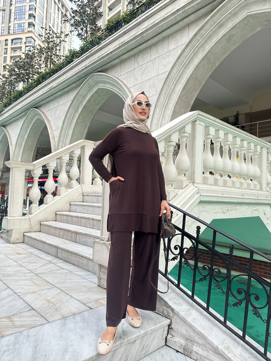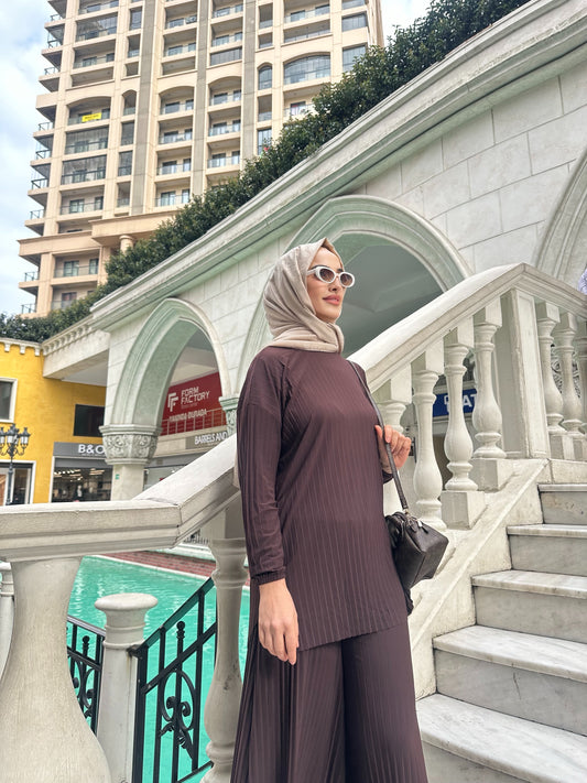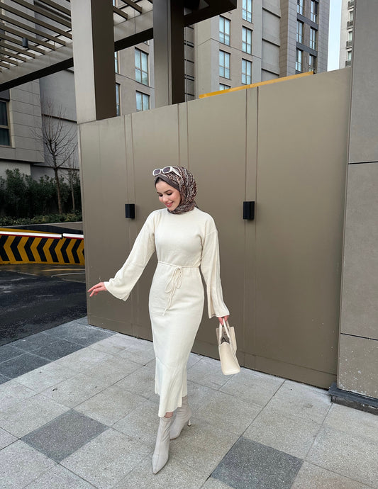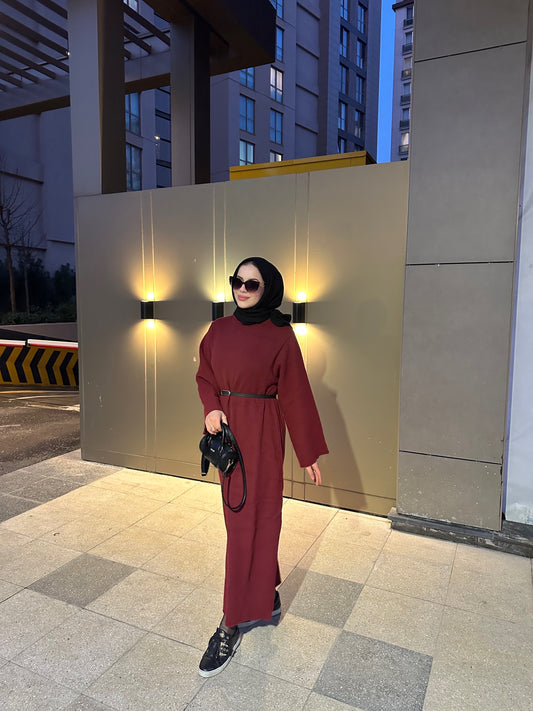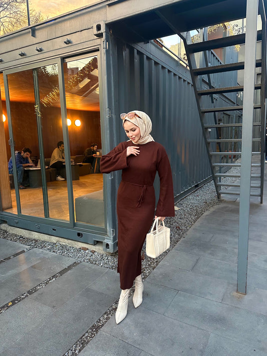 Lia İspanyol Kol Triko Elbise Kahverengi