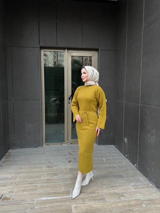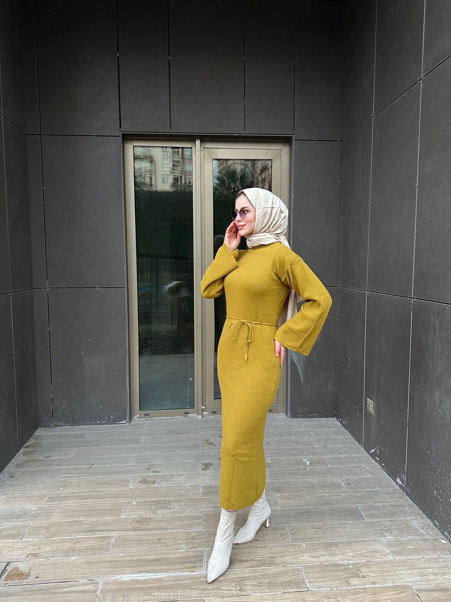 Lia İspanyol Kol Triko Elbise Yağ Yeşili