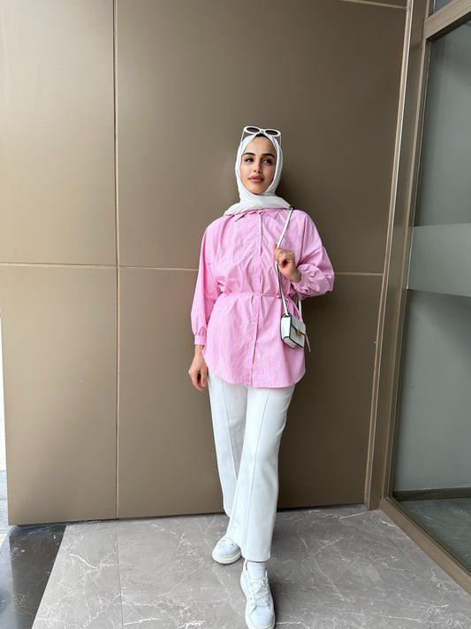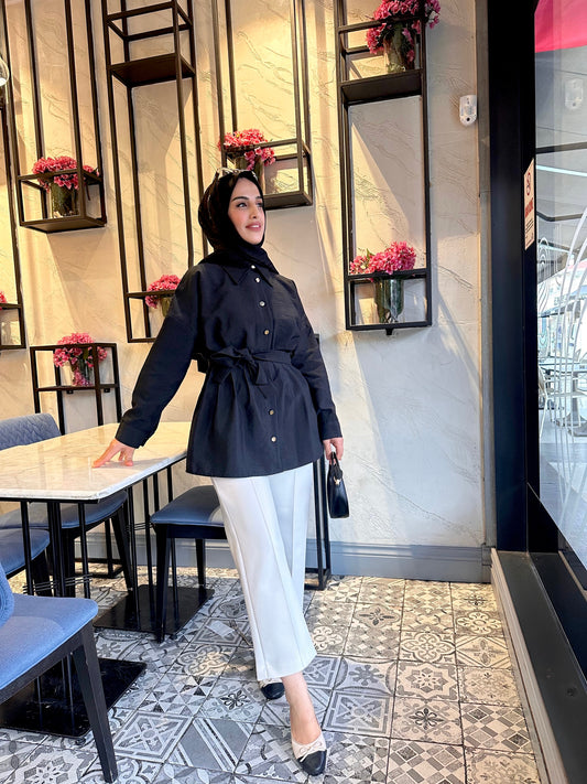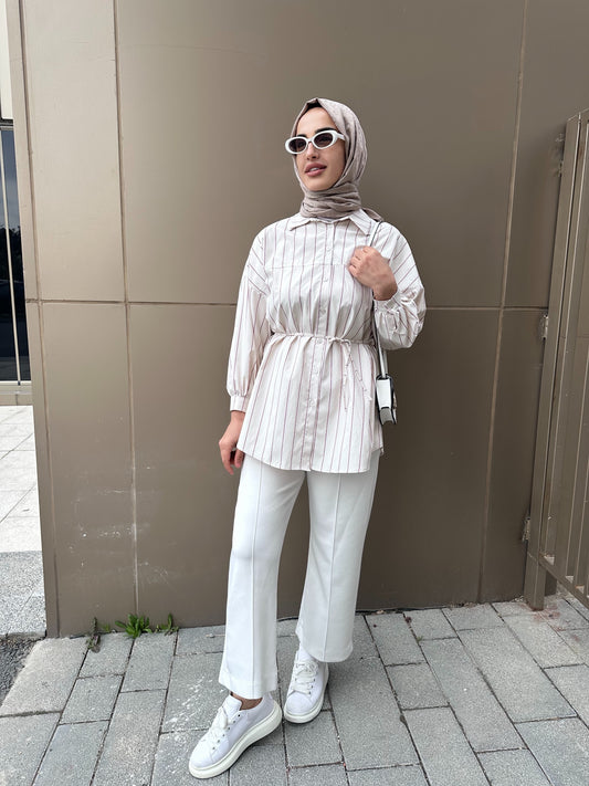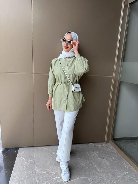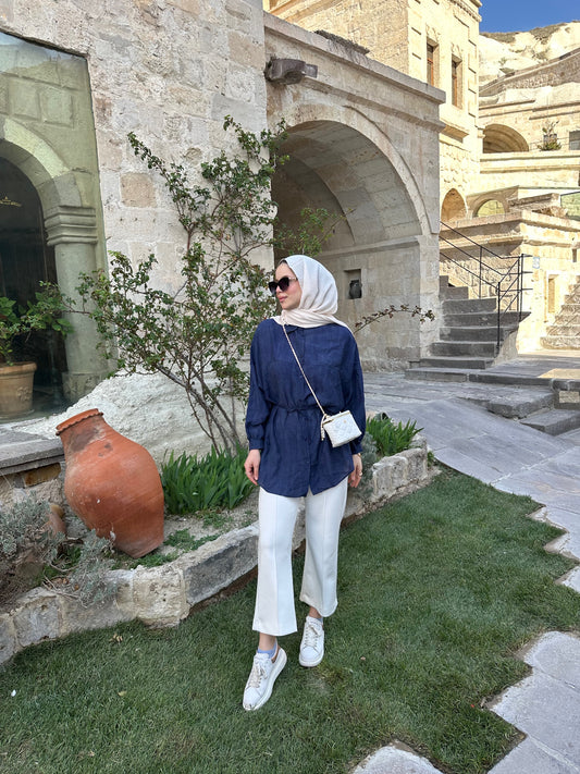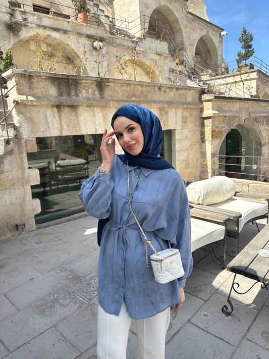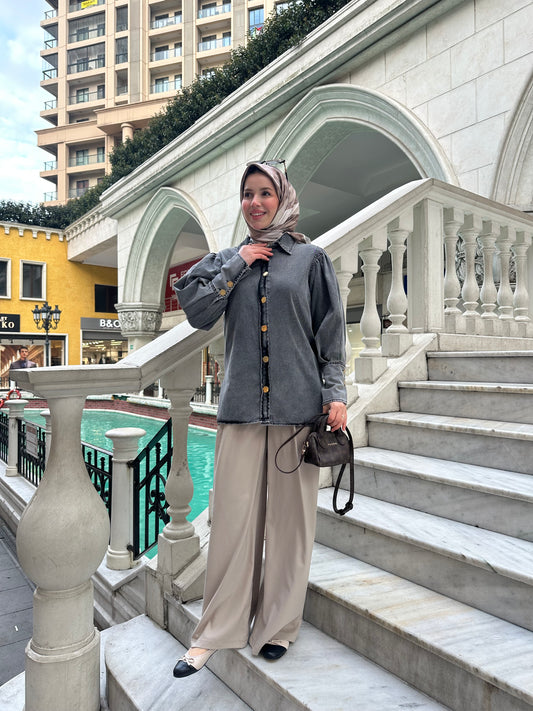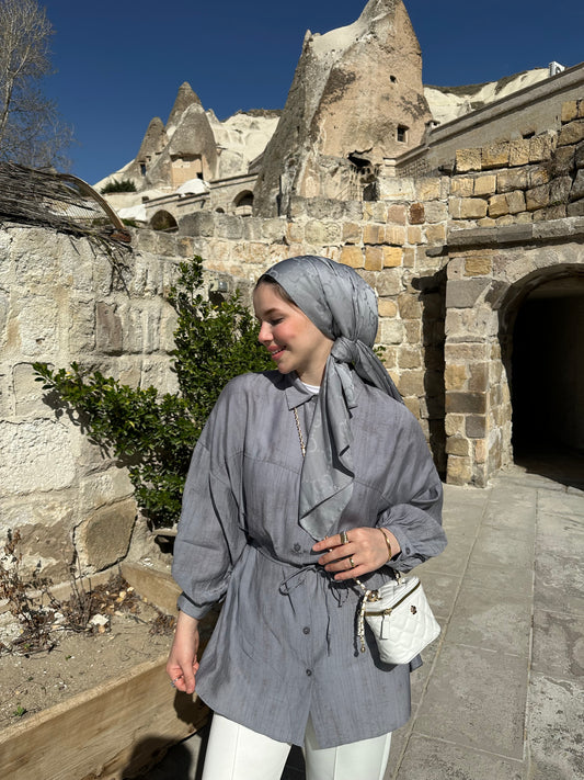 TükendiBelden Kuşaklı Viskon Gömlek Gri